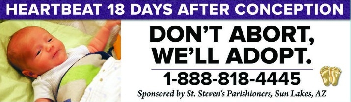 St. Steven’s Parish, in Sun Lakes, Ariz., is putting an unusual message on an I-10 billboard for thousands of drivers. The “Don’t Abort. We’ll Adopt.” billboard is intended to let people know that there are options if they find themselves with an unplanned pregnancy.