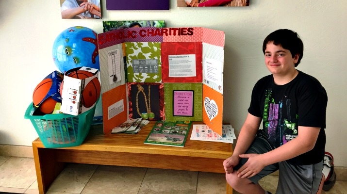 Seventh-grade student, James Hartnett, chose to support Catholic Charities foster care program. His choice was especially meaningful because he was adopted from foster care through Catholic Charities when he was 3 months old.