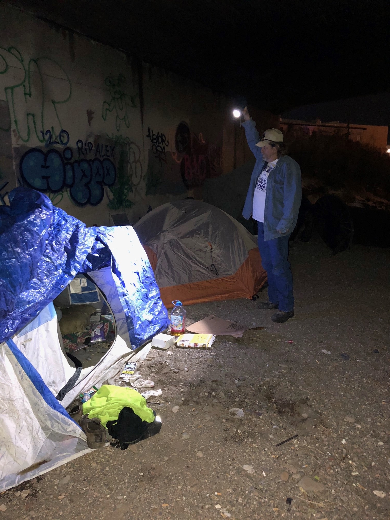 The pair conducted outreach at shopping centers, alleys, bridges, and tunnels in the area. They found many tents with no inhabitants, but Patricia and Randy trekked on knowing that there were others who needed their help.
