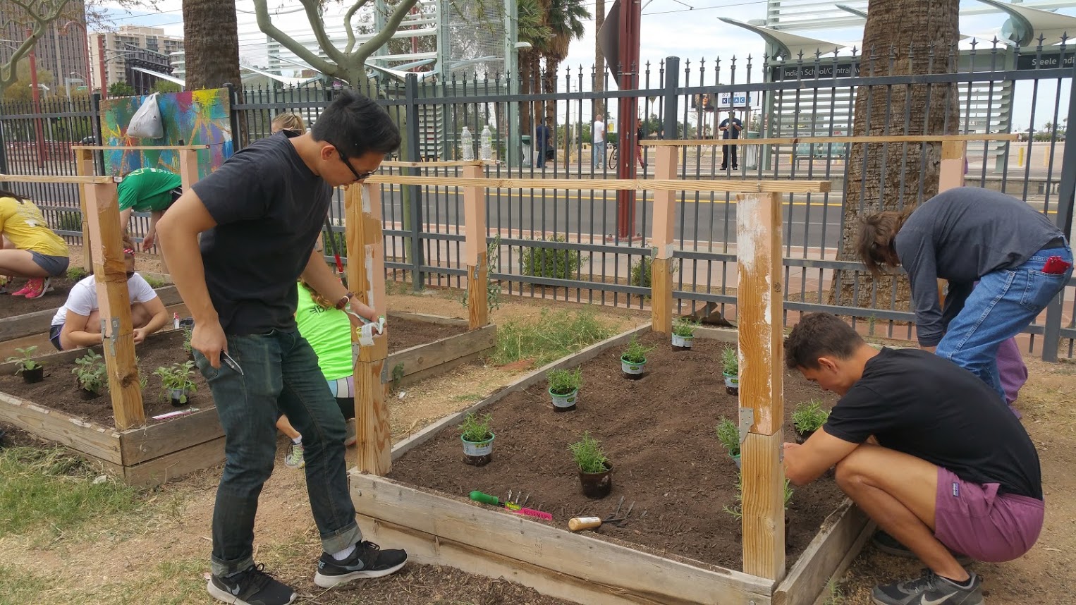 The garden space is tended by veterans residing at the MANA House as a form of agritherapy, as well as volunteers from several different organizations. On April 30, Arizona State University Tillman Scholars came to help plant herbs in our raised garden beds.