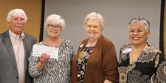 At the awards dinner last month, Bob Phillips, Sun Lakes Rotary Foundation 2000 Board President, presented the check to Wendy Owens, Catholic Charities Resource Development Manager, alongside Dr. Honora Norton, past Catholic Charities Board Chair/Emeritus Board Member, and Victoria Flatley, Rotary Club of Sun Lakes President, pictured above left to right.