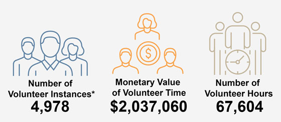 Volunteers are instrumental to our success, and we recognize the remarkable value they add to our agency. Last year alone: |